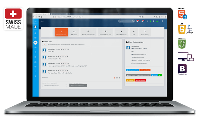 Max Help Chat has been developed to be as easy to use as possible! Whenever possible everything should be reached with one click or touch and no bounderies on devices and screen sizes.